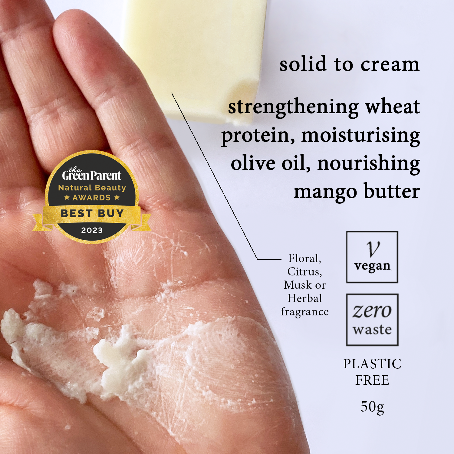 Silicone free, palm free, preservative free, sulphate free, free from phthalates, free from artificial colours, vegan & cruelty free.